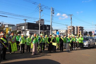 秋の全国交通安全運動(9月21日~30日)が始まり、清田中央地区町内会連合会は9月24日(火)、交通安全決起集会を清田老人福祉センター(清田3条3丁目)駐車場で開催しました。