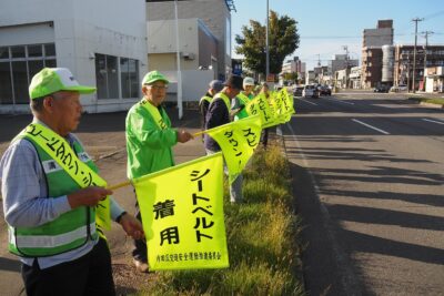 羊ヶ丘通を走るドライバーに安全運転を呼びかけ